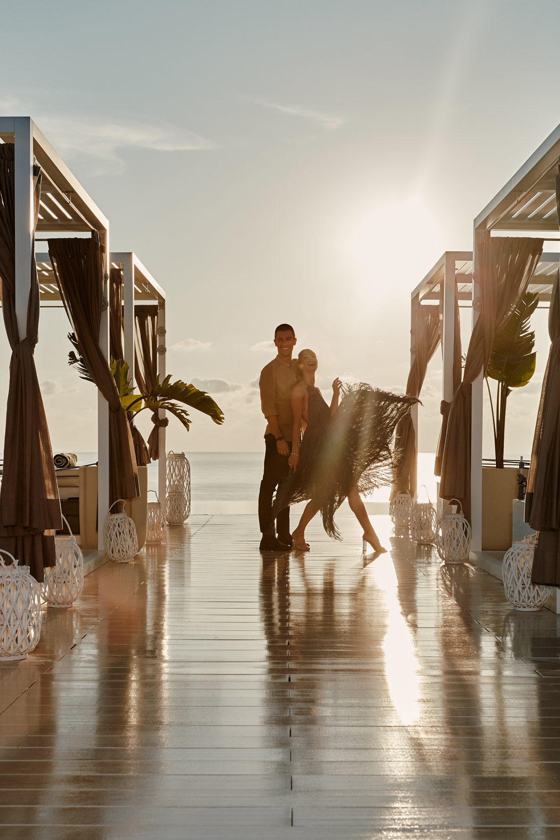 Está ubicado dentro del privilegiado escenario de Cala Nova, donde el azul cristalino de sus aguas junto con el blanco y negro de sus instalaciones envuelven todo el recinto. La paleta de color es casi perennemente monocromática, con gran cantidad de blanco, color insignia de la isla, pero donde también se cuelan acentos sutiles del siempre elegante negro. Esta combinación de colores ha estado inspirada en Coco Chanel, junto con su minimalismo y la sencillez de sus diseños.